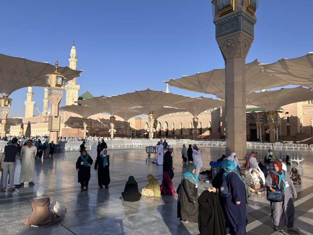Our daily schedule consisted of a 3 am wakeup for qiyam (night prayer). Afterward we would breakfast and nap. From then on, the time was your own until sunset. You had the choice shop, sleep, and make subsquent prayers. We congregated again from Maghrib to Isha and ate dinner. Depending on the day and energy levels we would do our shopping.